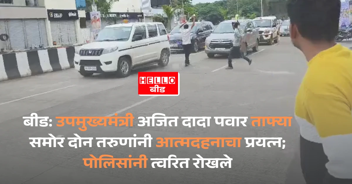 बीड: उपमुख्यमंत्री अजित दादा पवार ताफ्या समोर दोन तरुणांनी आत्मदहनाचा प्रयत्न; पोलिसांनी त्वरित रोखले