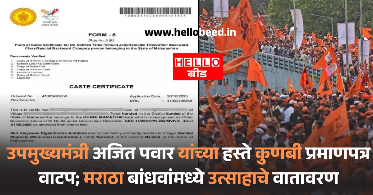 उपमुख्यमंत्री अजित पवार यांच्या हस्ते कुणबी प्रमाणपत्र वाटप; मराठा बांधवांमध्ये उत्साहाचे वातावरण