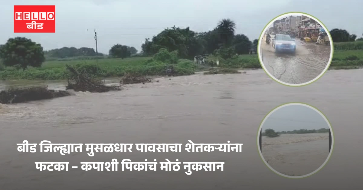 बीड जिल्ह्यात मुसळधार पावसाचा शेतकऱ्यांना फटका – कपाशी पिकांचं मोठं नुकसान